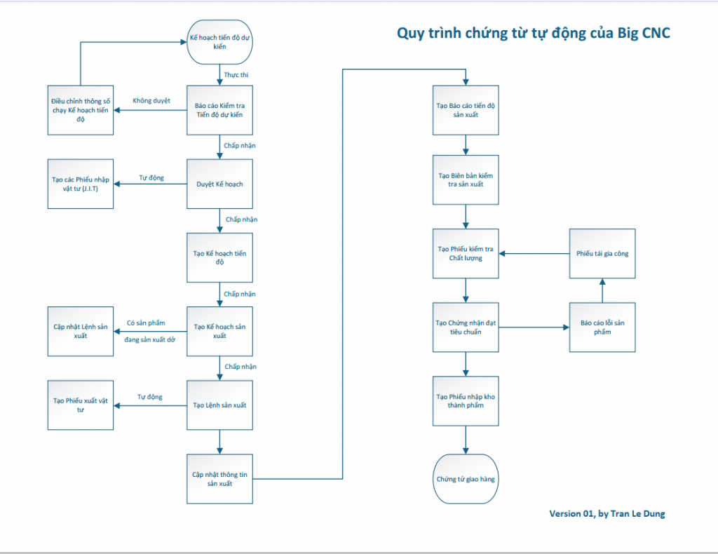 Dưới đây là Quy trình chứng từ tự động của 1 Doanh nghiệp mà VSIC đề nghị. Quy trình này giúp Doanh nghiệp khách hàng nắm được quy trình vận hành chính của hoạt động sản xuất, gia công cơ khí, đặc biệt nhấn mạnh đến các bước công việc được thiết kế liên quan đến Kế hoạch tiến độ dự kiến.